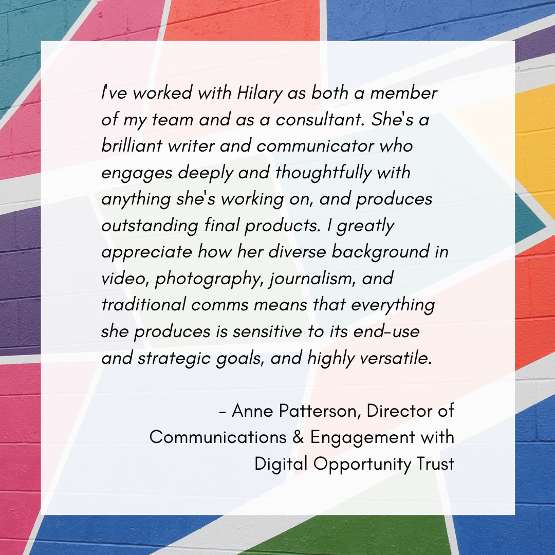 I also work with agencies to provide brand storytelling and copy-writing for their clients. My writing is strategic, pithy, and takes best SEO practices into account.